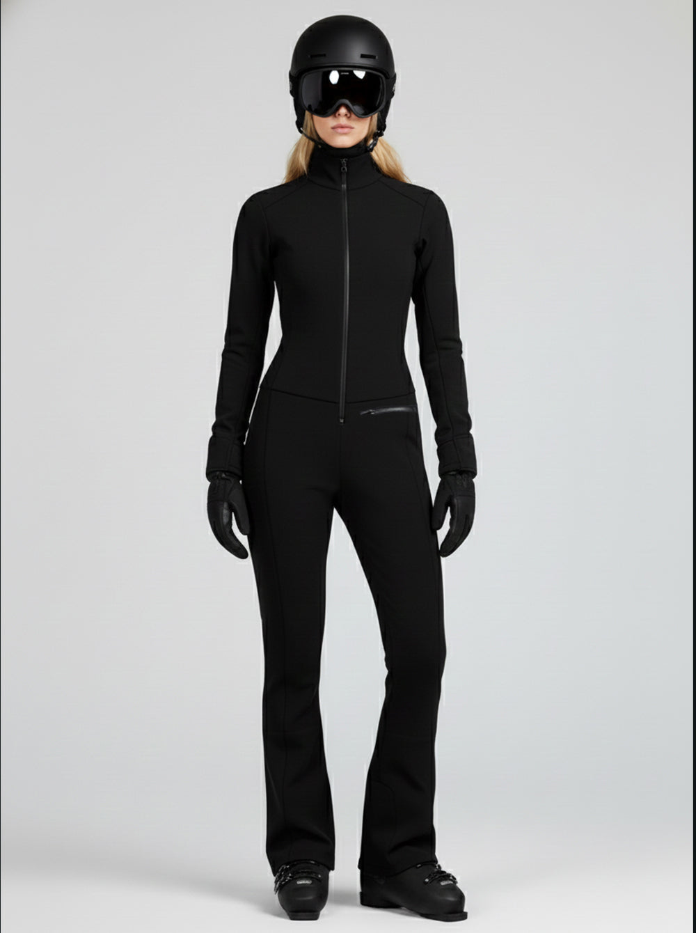 Elegante traje de esquí en una sola pieza y con mangas. Fabricado con el prestigio tejido Schoeller que te mantiene protegida, cálida, acentúa la silueta y ofrece total libertad de movimiento. El mono de esquí que esperabas.