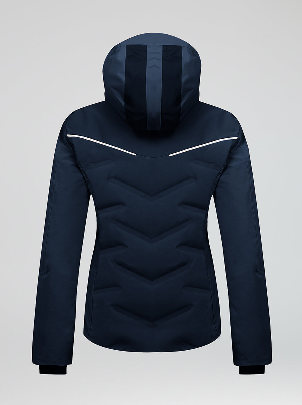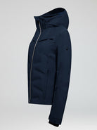 Técnica y con estilo. Chaqueta de esquí para mujer con acolchado sin costuras. Fabricada con membrana técnica, altísima impermeabilidad 30K/30K y relleno híbrido de plumón y suave boata. Una auténtica esquiadora.